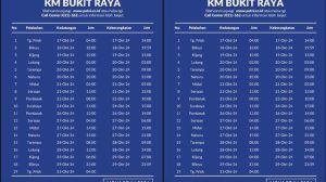 Jadwal KM Bukit Raya hingga November 2025 untuk Semua Rute